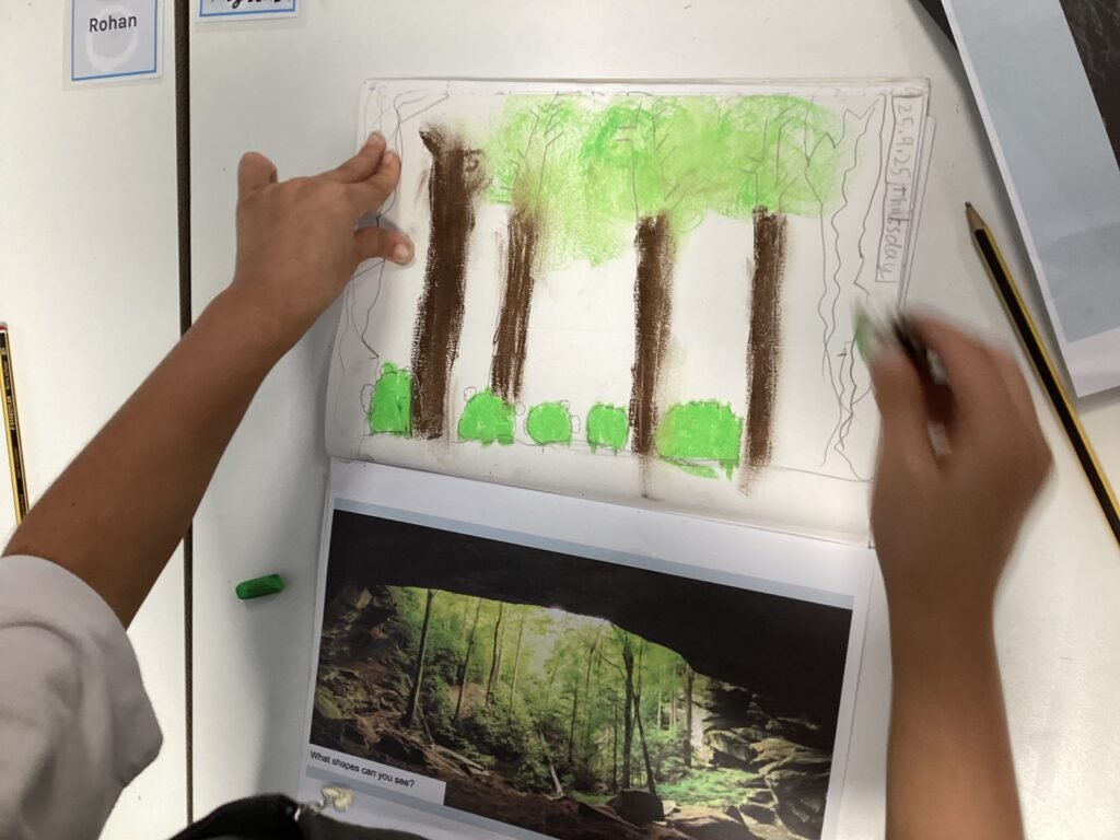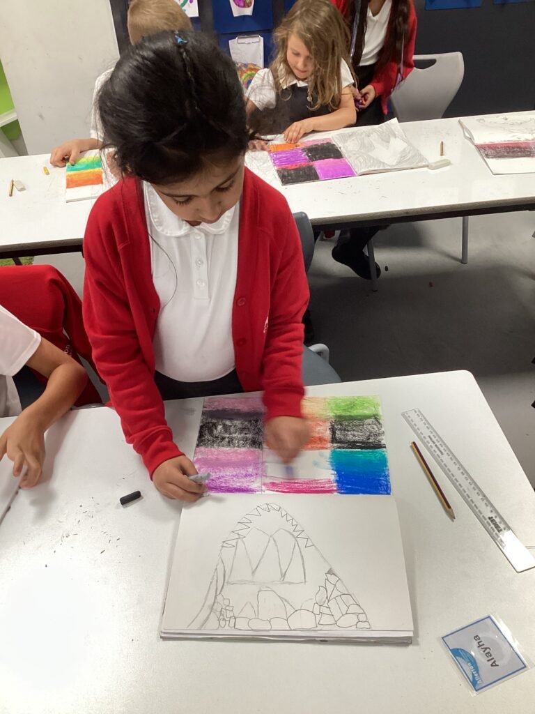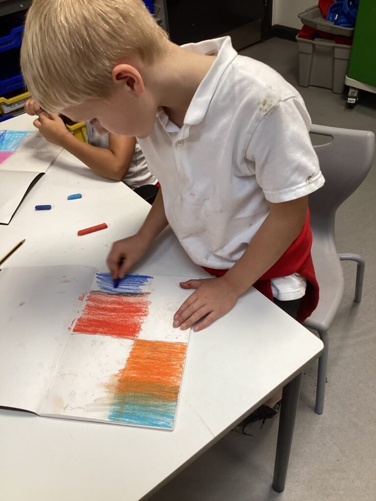 In our first set lesson we learnt a new technique of blending with pastels to mix different colours gradually. In the coming weeks we will be using this technique to create more complex images and landscapes.