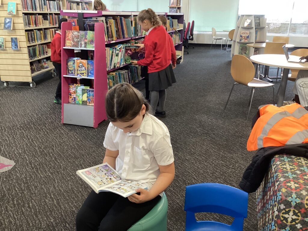 This week we went on our termly visit to the local library at the Moor Allerton Centre. We had a lovely time browsing the books and discussing our favourite and recent reads. As a bonus, we were given our very own class library card to borrow books to use in our classroom at school. The children chose a few books they wanted adding to our book corner. Many of our class already have a library card from Moor Allerton – if your child would like one they are completely free and the library staff are very excited to help as many children as possible sign up to start their reading journey with the library.