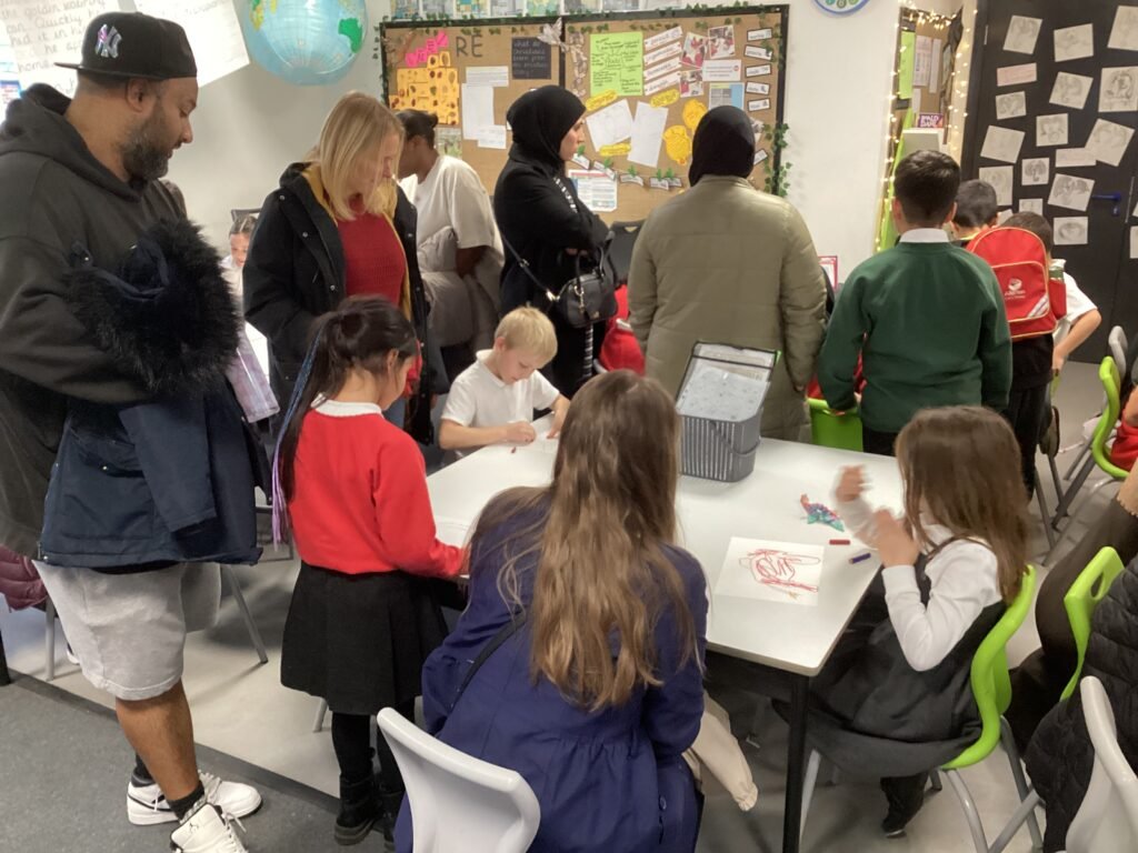 Our annual Stone Age workshop is one of the highlights of our Stone Age topic and a chance for the children to show off some of the skills and knowledge they have been learning about. This year was no exception and I would like to say a huge thank you to all the parents who were able to attend and make the sessions so enjoyable. The excitement at being able to draw cave paintings on the wall of our building was palpable and the conversations I overheard between children and grown ups showed how much they have learnt in the past few weeks.